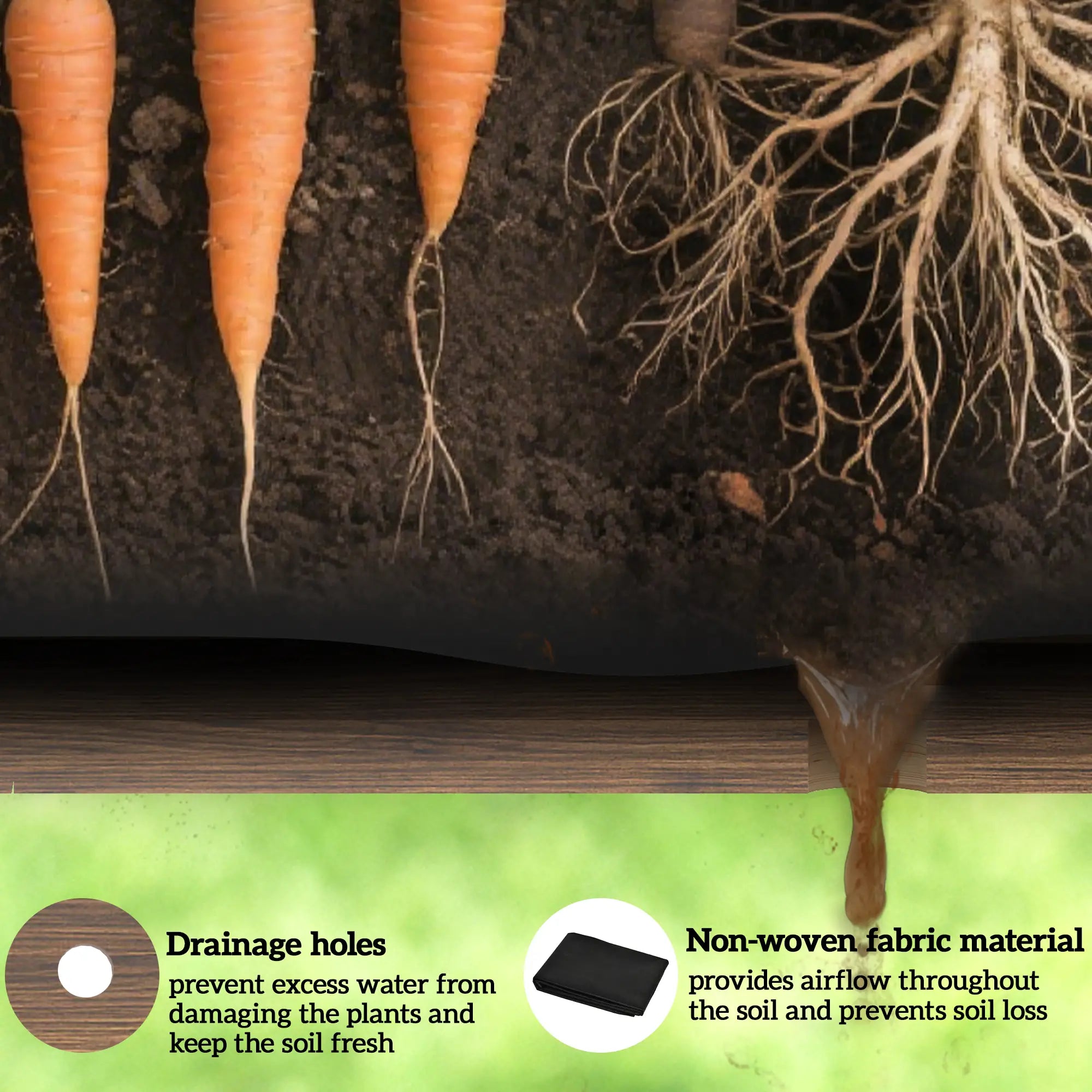 - Inner non-woven fabric bag included for airflow, soil retention, and 4 drainage holes to prevent water damage.