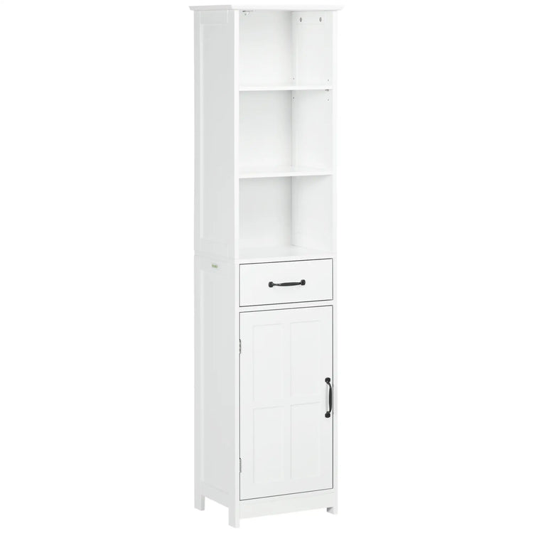 Modern Bathroom Cabinet, 3 Open Shelves, Drawer, Adjustable Shelf, White