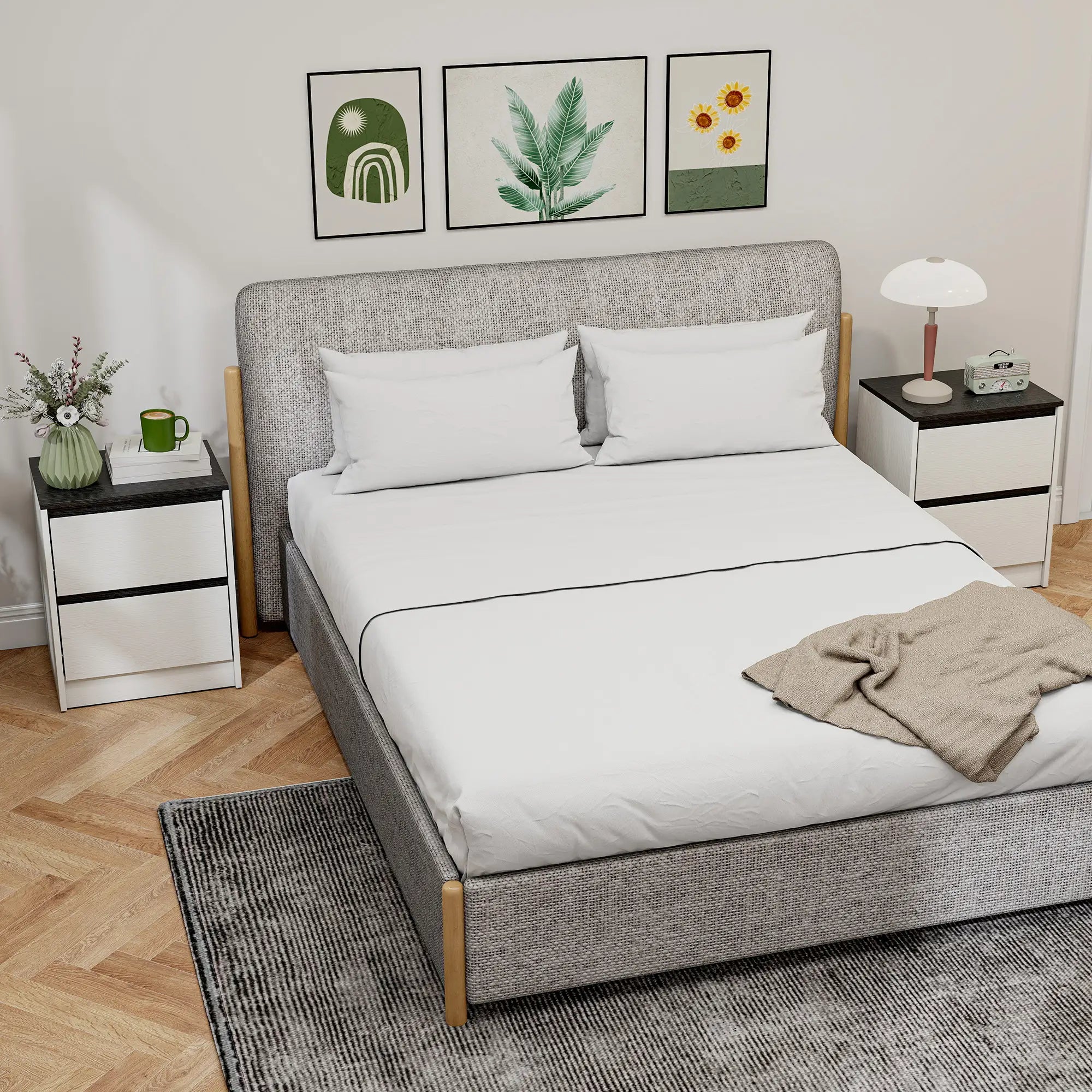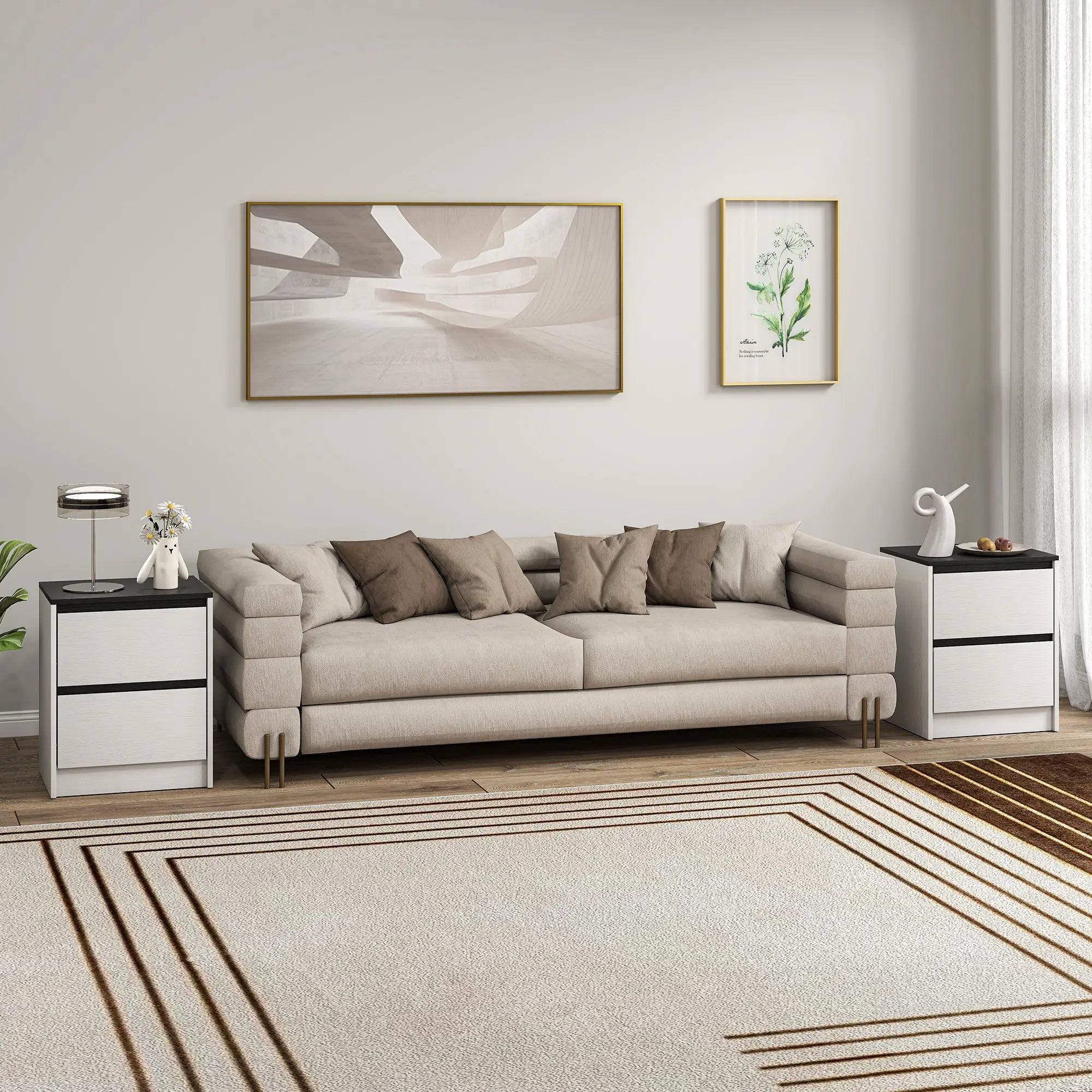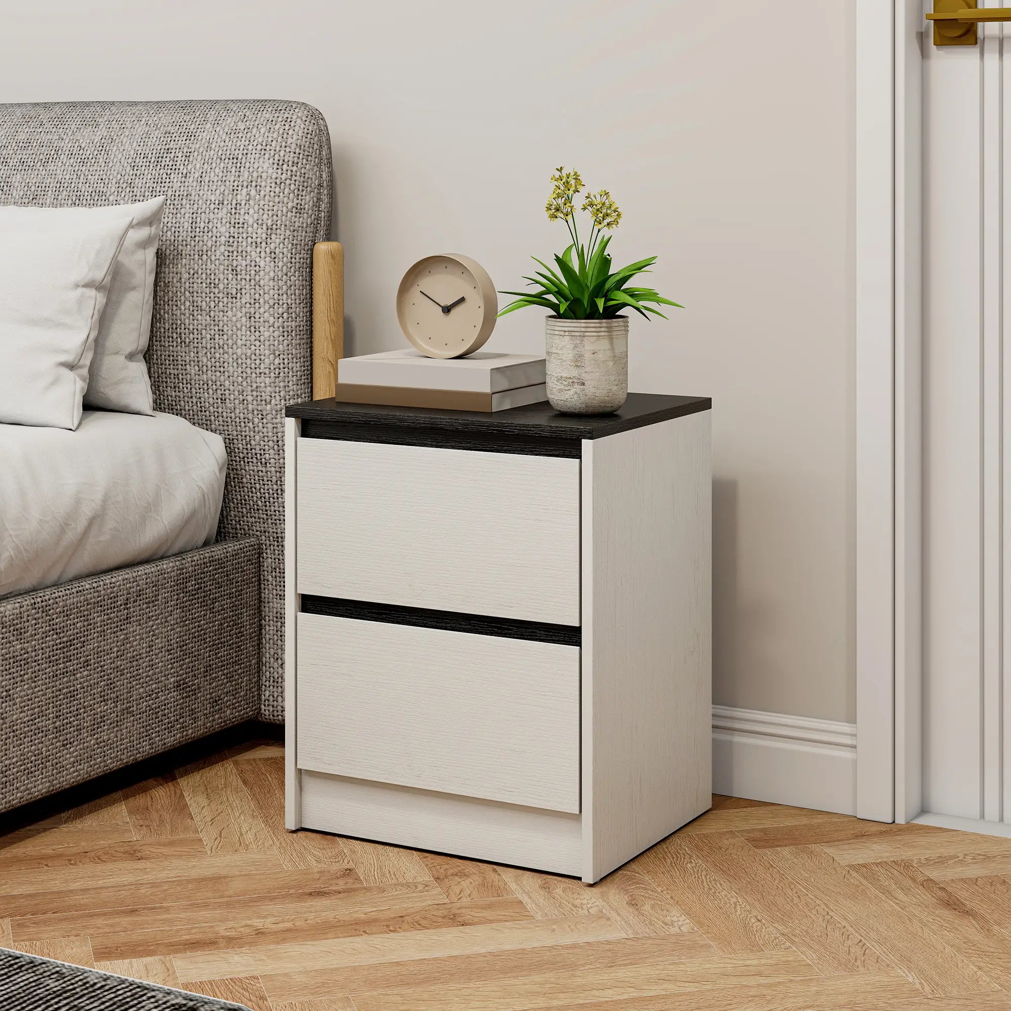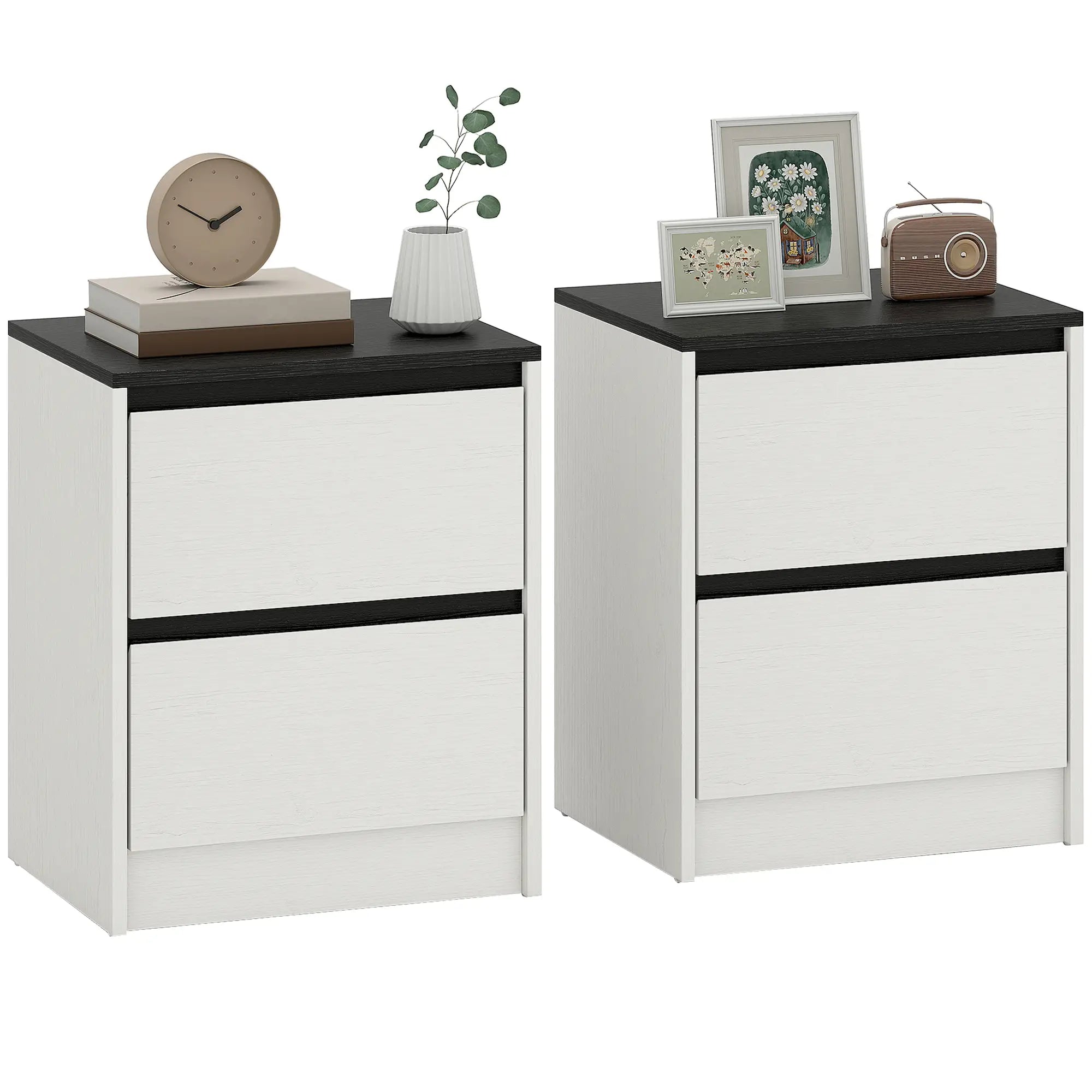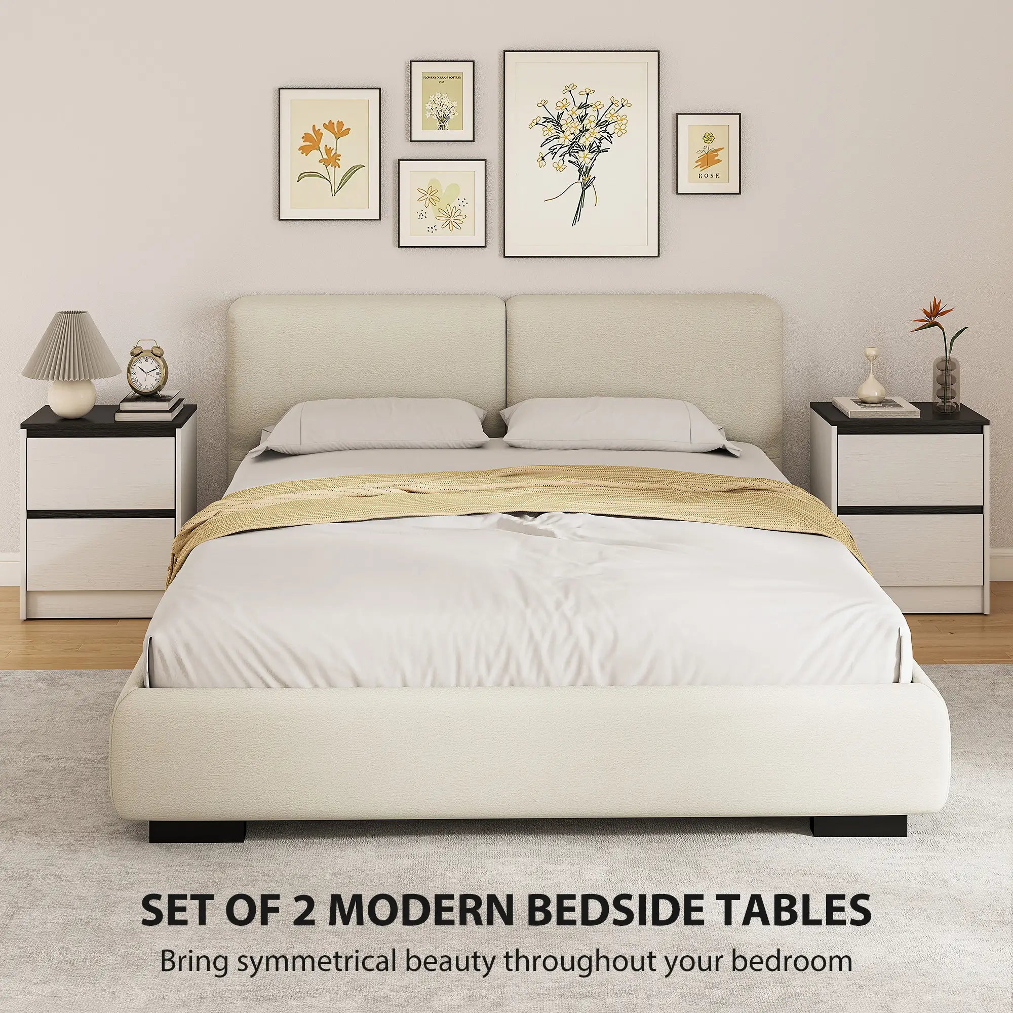 Modern Bedside Tables, Set of 2, 2 Drawers, White