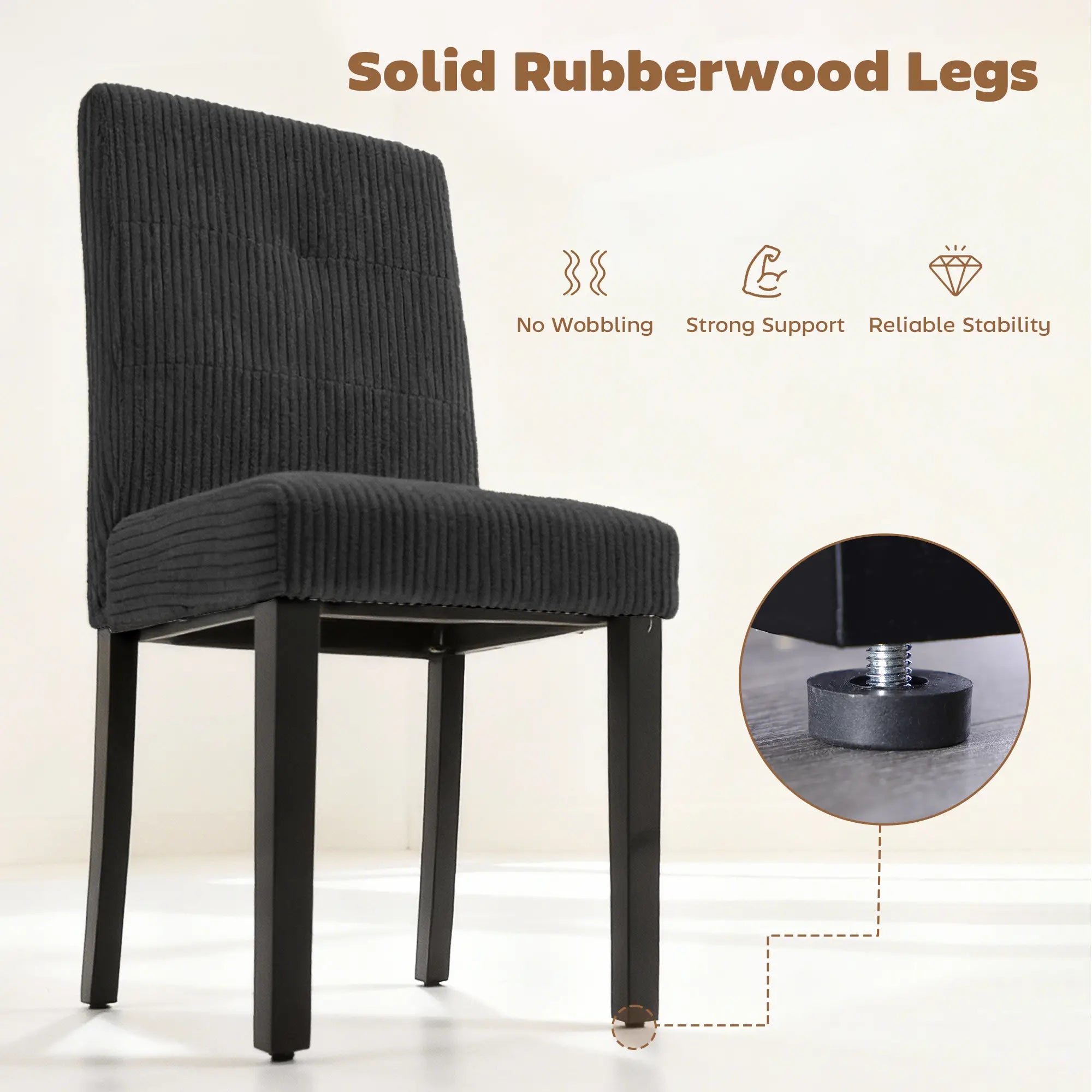 - Solid rubberwood legs provide reliable support with a weight capacity of 265 lbs.