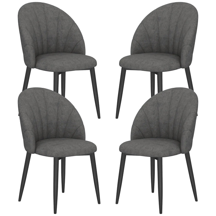 Elevate your dining experience with this set of four contemporary dining chairs, designed to blend style and comfort seamlessly. Perfect for any home decor, these chairs feature a shell-style back with delicate channel tufted stitching, soft velvet-touch fabric, and ergonomic curved back support for ultimate comfort.