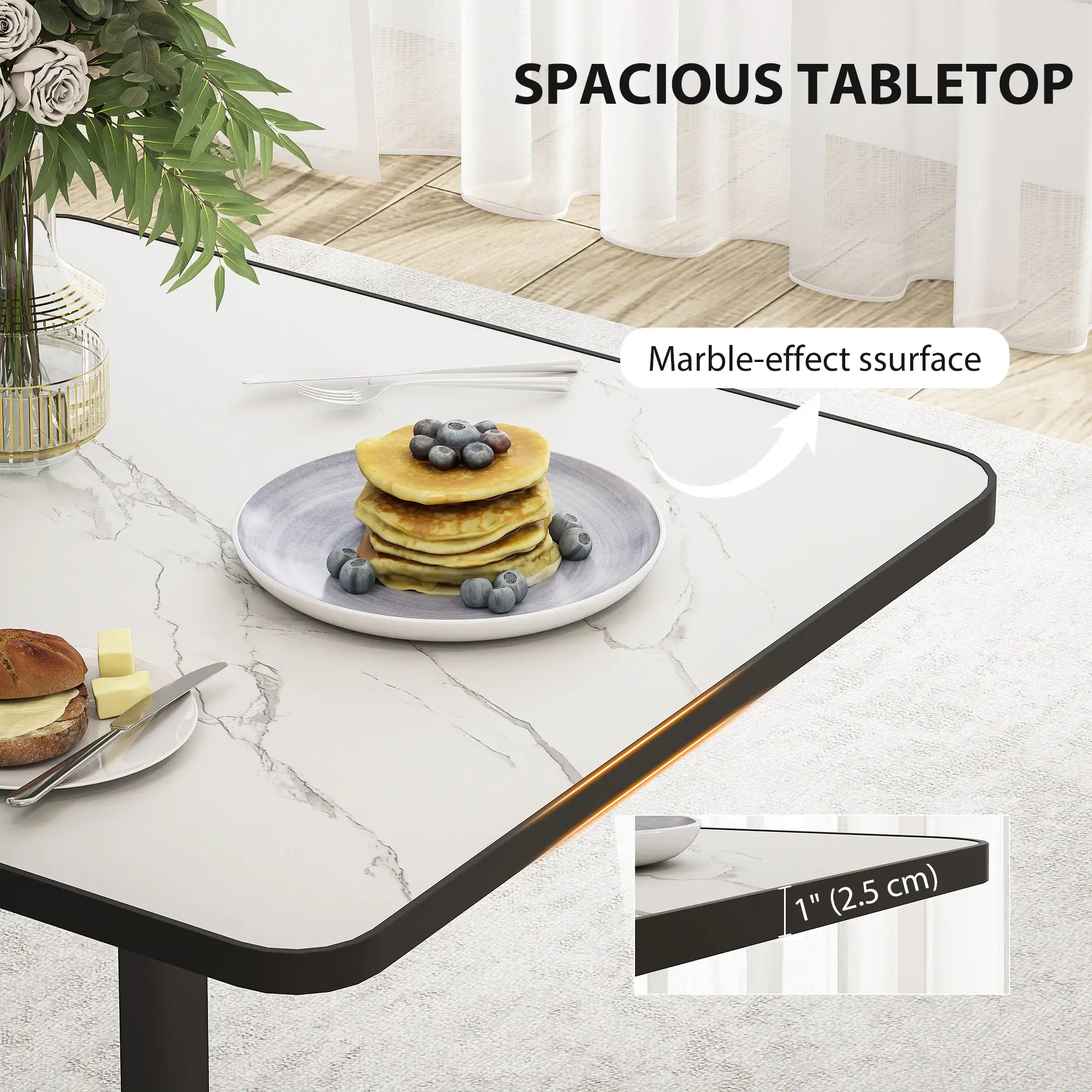 - White marble-effect tabletop enhances aesthetic appeal with a sophisticated touch