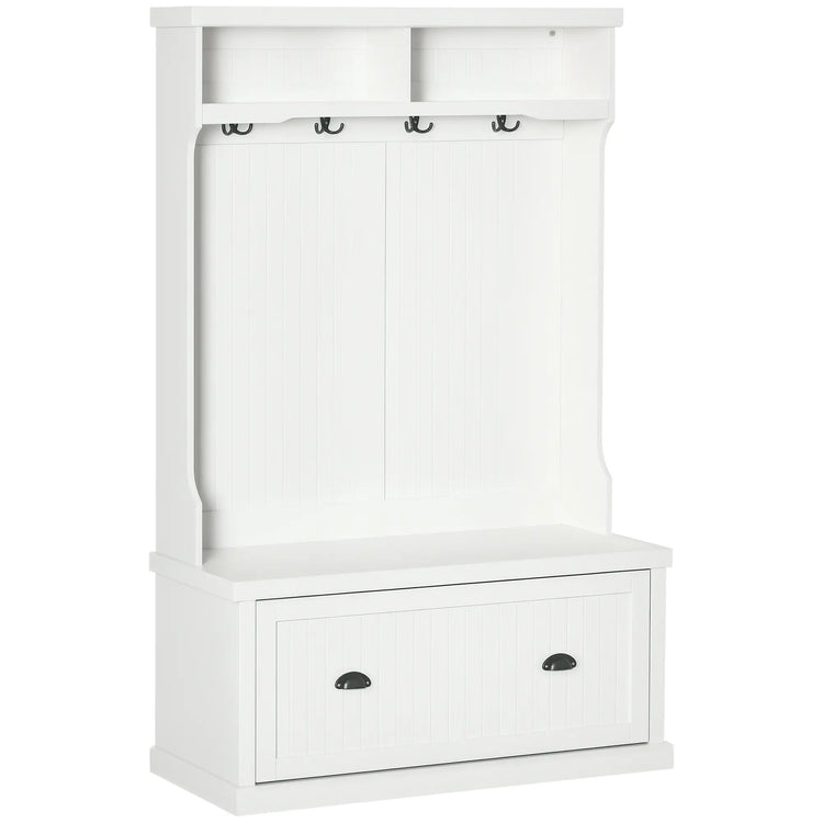 Modern Hall Tree, Coat Rack With Shoe Storage Bench, 3-in-1 Wardrobe, White