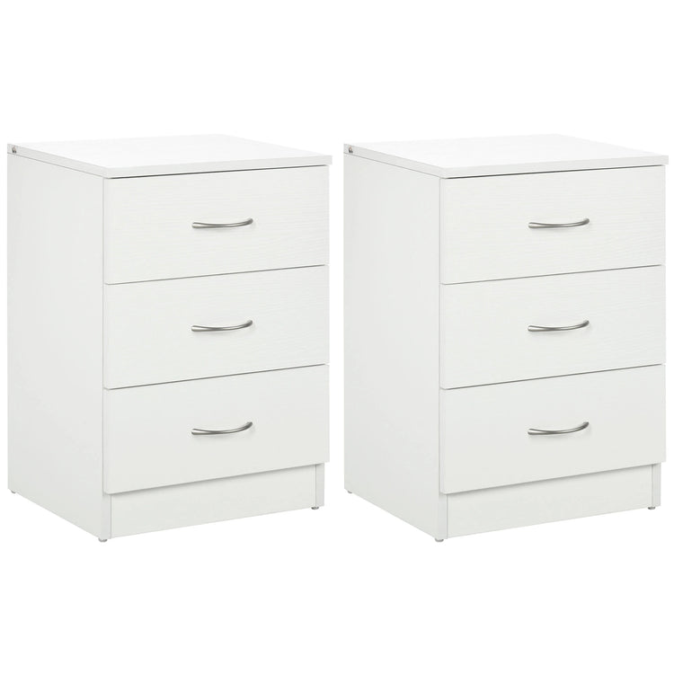 Modern Wood Nightstand, 3 Drawers, Anti-Tipping, Set of 2, White