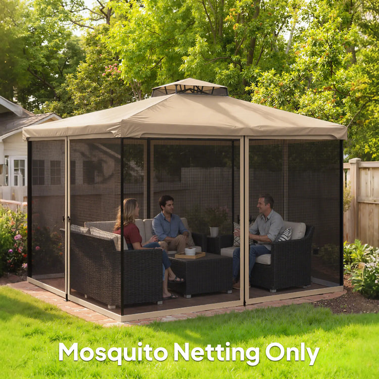 Mosquito Netting For Gazebo, 12' x 12', Beige, Black