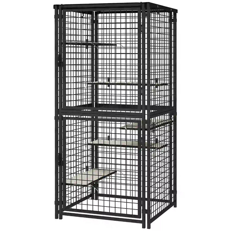 Multi-Level Cat Cage, Outdoor Catio, Steel, UV Water Resistant Cover, 5 Platforms, Soft Pads, Black