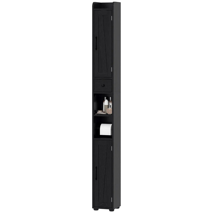 Narrow Bathroom Cabinet, Tall Storage with Barn Doors, Wood Grain, Black