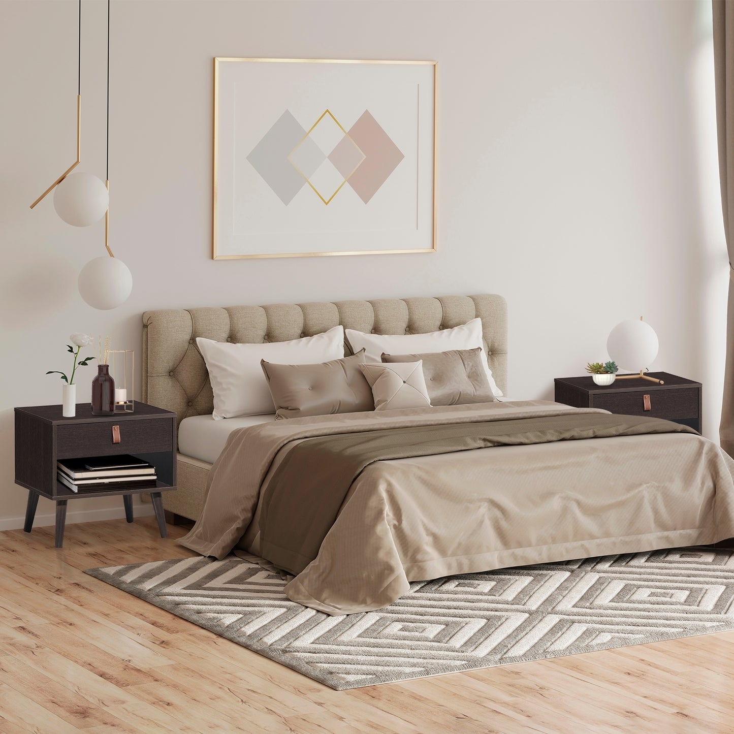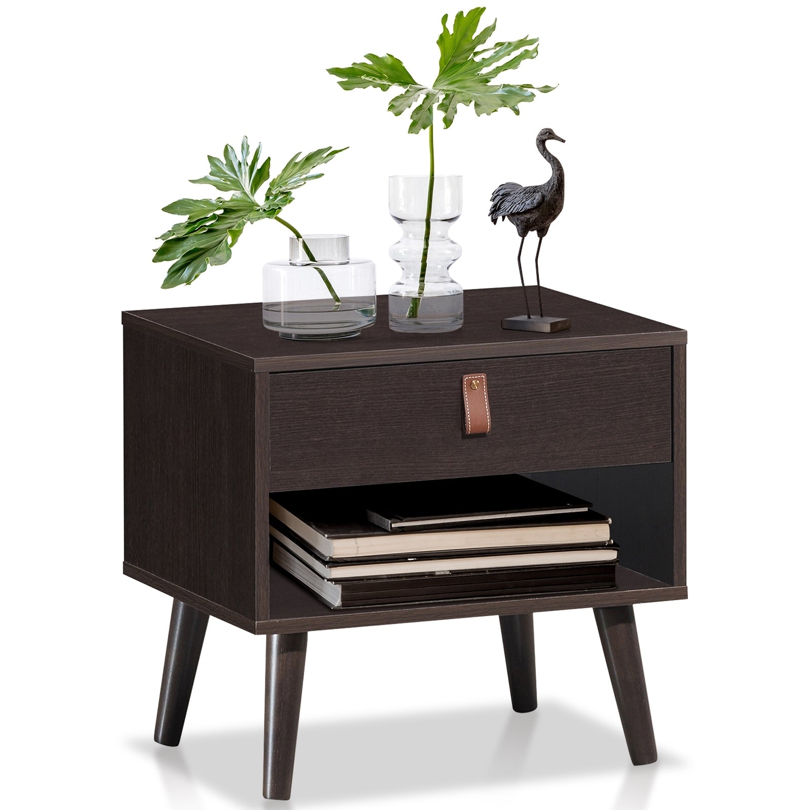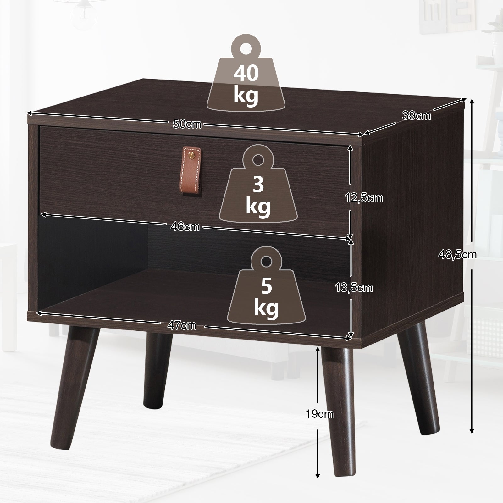 Nightstand Bedroom Table with Drawer Storage Shelf, Brown