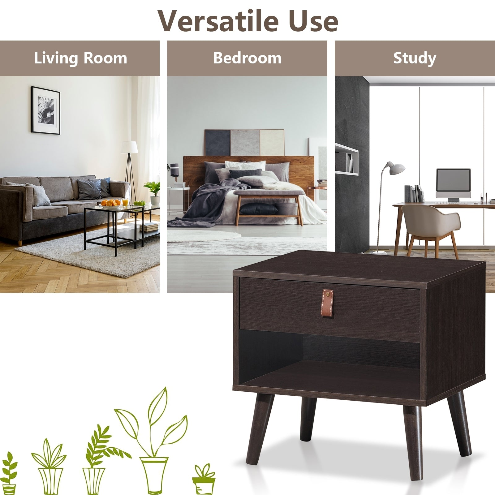 Besides, it has good bearing capacity and stability. Equipped with one shelf and one drawer, this end table offers large storage space for you to arrange you items, which keeps your room clean and tidy. Most importantly, mid-century style of our bedside table, combing both modern and classic, fits any decor and other furniture. Take our nightstand to decorate your bedrooms, living rooms and offices.