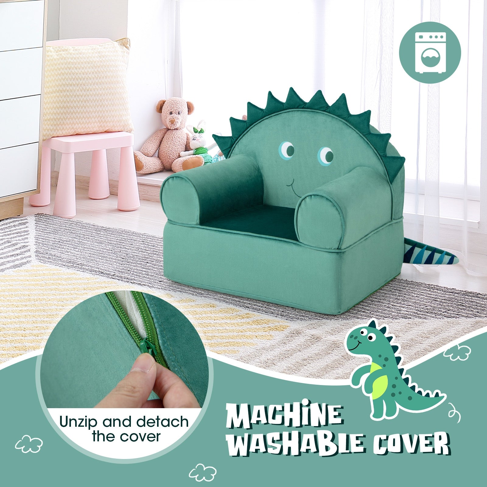Kids Sofa with Cute Appearance: This kid's sofa is designed in an adorable shape, decorated with 3D ornaments. Your children will fall in love with this kid's sofa as soon as they get it. Also, this kid's sofa can accompany the growth of your children, creating a wonderful space for reading, drawing, watching TV, playing games, and more.