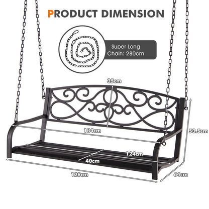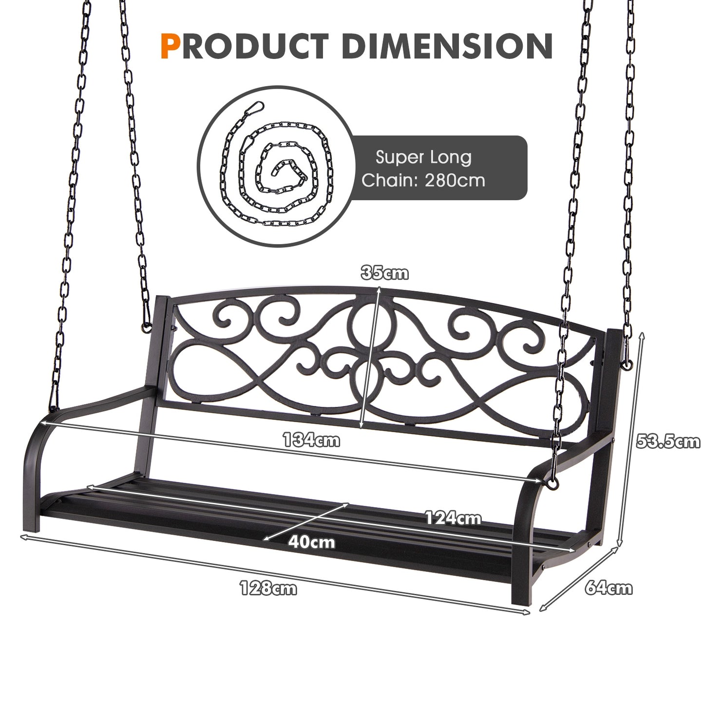 This beautifully designed swing chair will perfectly go with your outdoor furniture. You can enjoy sunny days or cool summer nights on this elegant bench swing. Featuring a strengthened metal frame, this swing bench is not only rustproof but also resistant to damage. Curved armrests and hollowed backrests make you sit with more coziness. The extra-wide seat allows you and your beloved one to swing back and forth together. And if you want further comfort, you can also place a cushion on the seat.