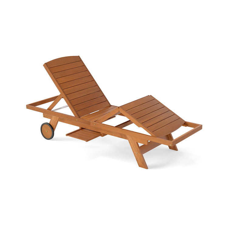 Outdoor Chaise Lounge Chair with Wheels 4-Position Patio Wood Recliner with Adjustable Backrest