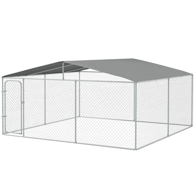 Outdoor Dog Kennel, Heavy Duty Playpen, Secure Lock, Cover, 15.1' x 15.1' x 7.5'