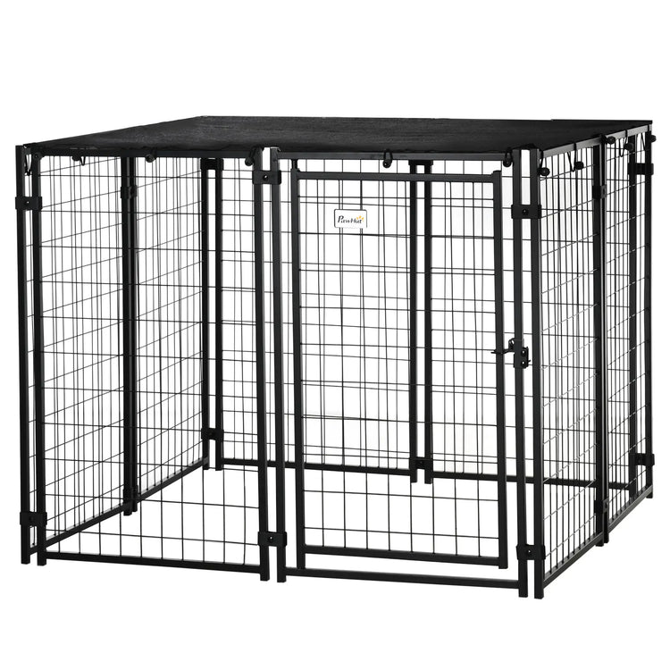 Outdoor Dog Kennel, Lockable Pet Playpen with Cover, Black