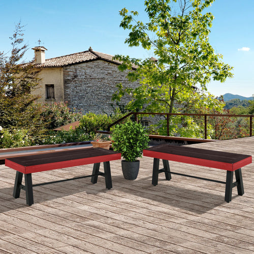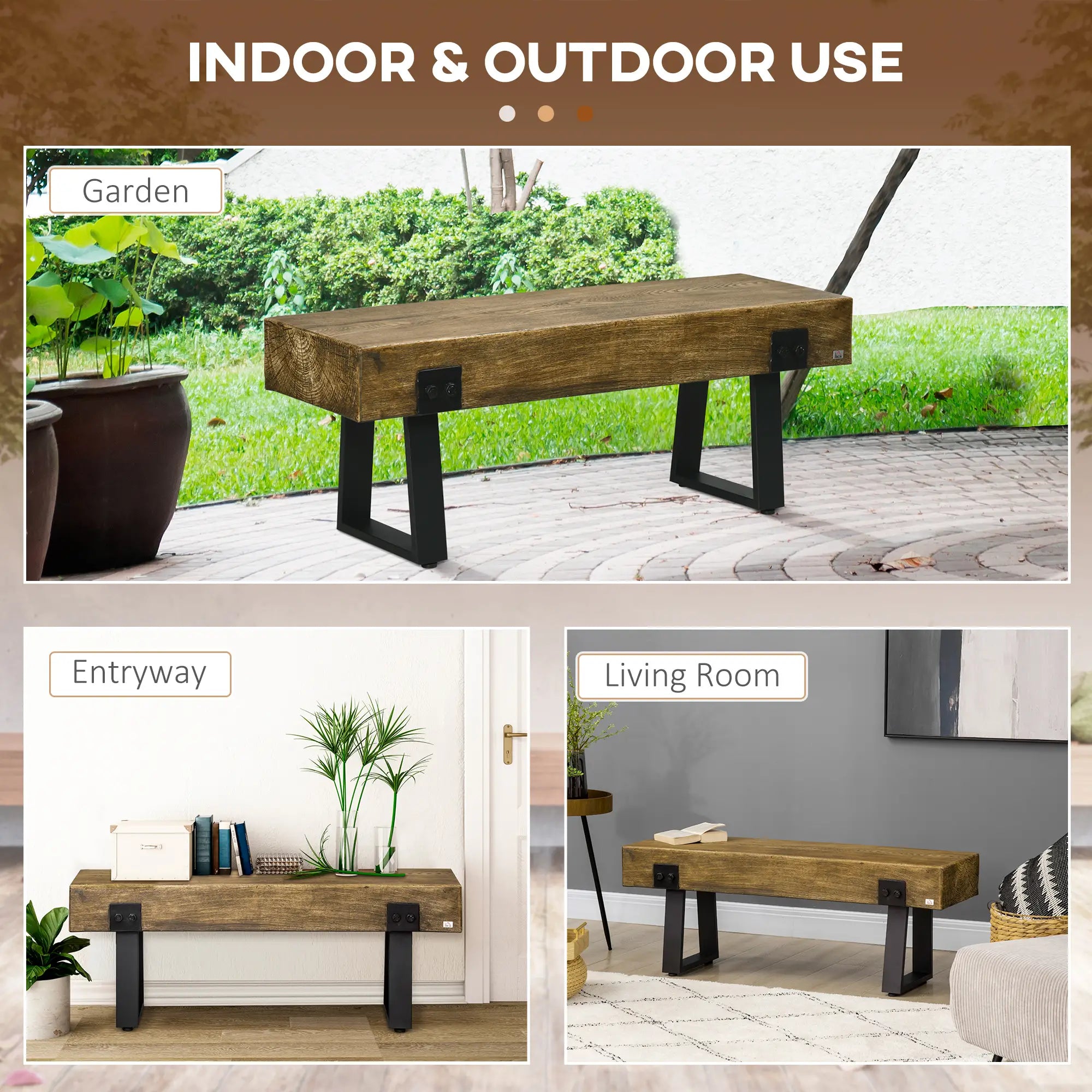 Outdoor Garden Bench, Metal Legs, Rustic Wood Effect Concrete, Natural and Black, Black