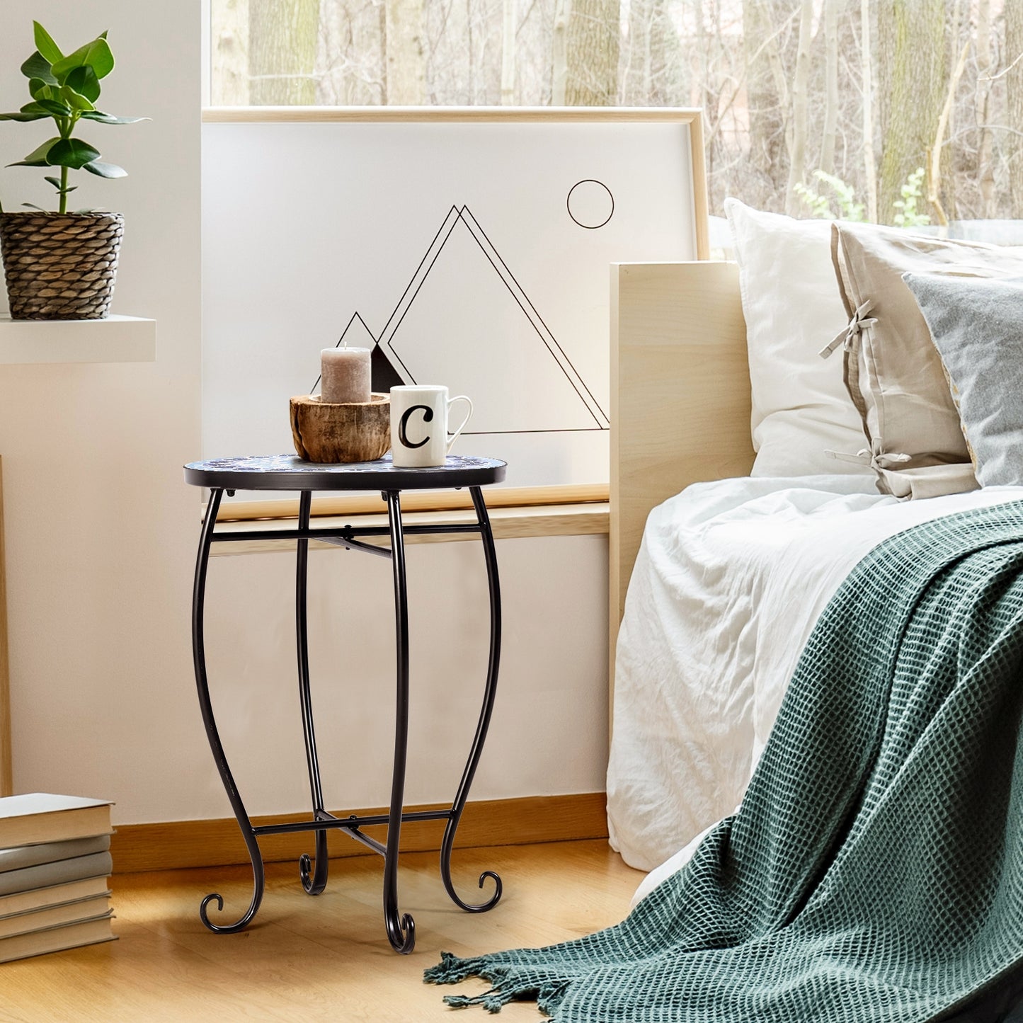 - Versatile round accent table perfect for indoor and outdoor use as a plant stand, coffee table, or side table.
