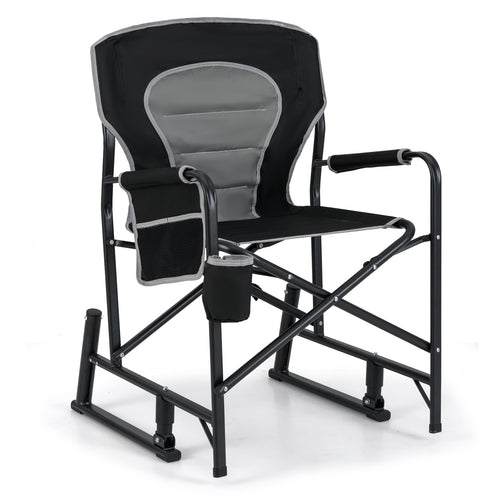Experience ultimate relaxation with this outdoor rocking camping chair featuring a dual-spring mechanism for smooth motion, padded backrest with 3 layers for comfort, and durable 600D oxford cloth construction. Perfect for camping, picnics, and backyard lounging with convenient cup holder and storage pocket.