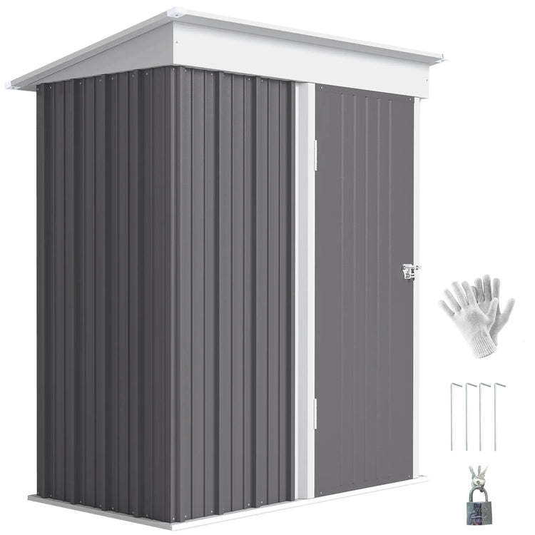 Outdoor Storage Shed, Steel Lean-To, Adjustable Shelf, 5'x3'x6', Grey