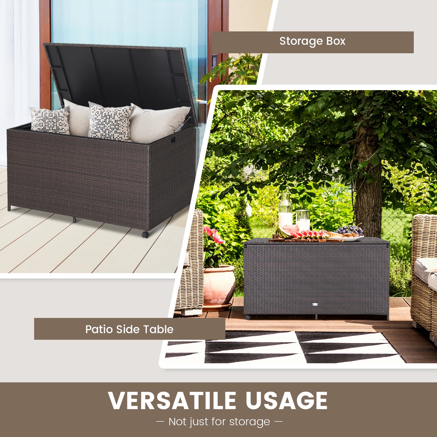 Outdoor Wicker Storage Box with Zippered Liner-133 Gallon, Brown