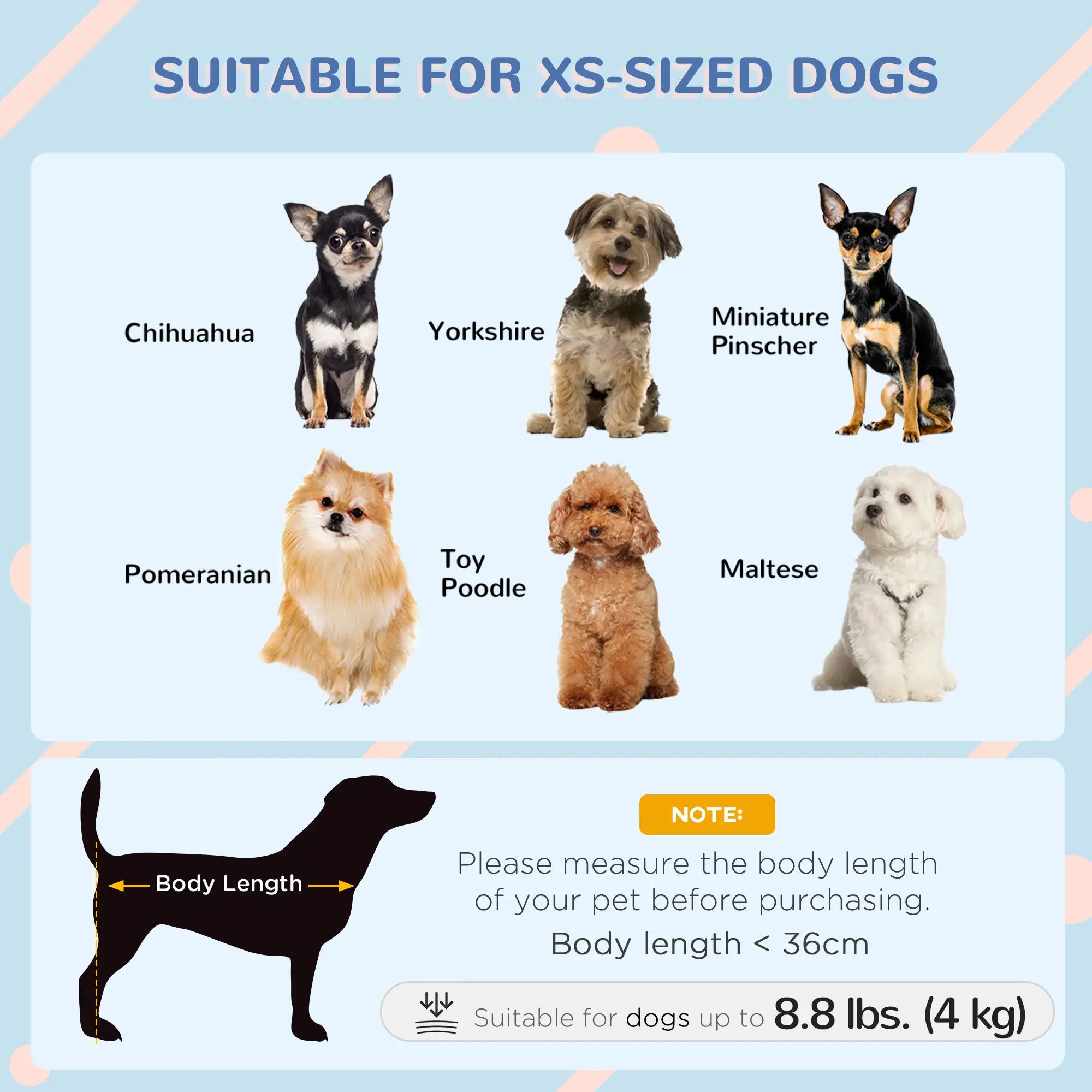 - Suitable for miniature dogs, up to 8.8 lbs. (4 kg) and 14.2" (36 cm) in body length.