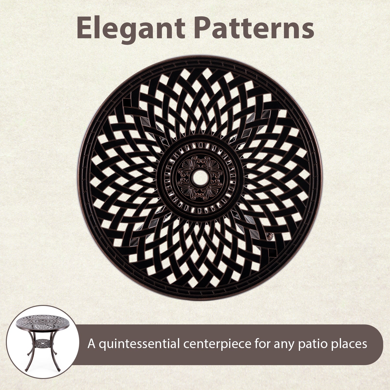 Ideal Outdoor Dining Choice: With 31" large tabletop and 13" bottom shelf, the table offers ample space for meals and dinnerware. And the elegant patterns make it more appealing in multiple occasions like backyard, front porch and poolside.