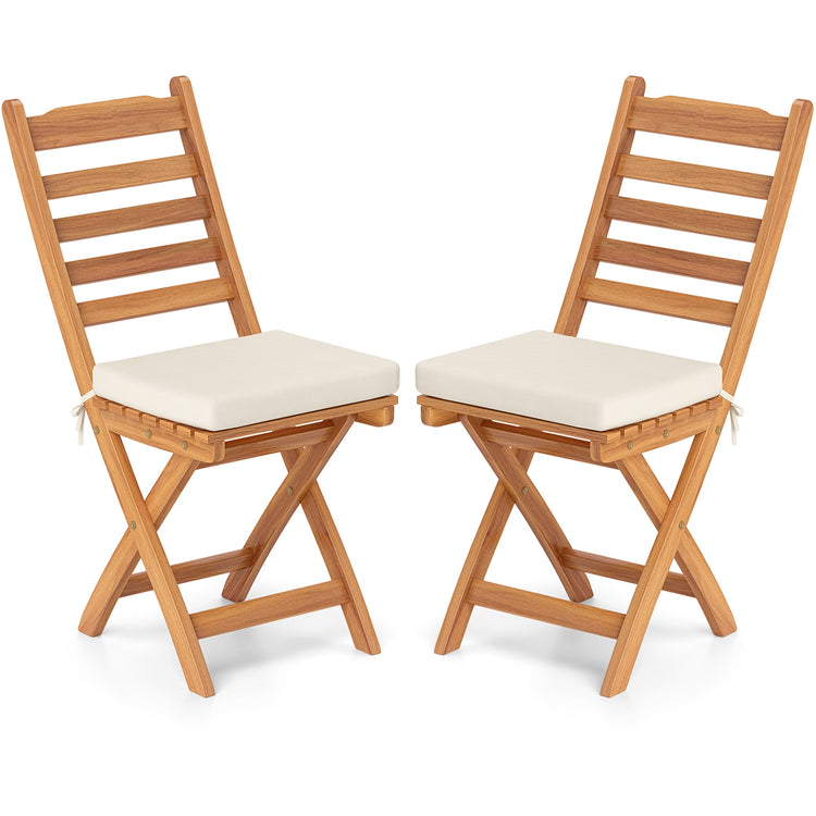 Patio Folding Chairs Set of 2 with Soft Seat Cushion-A, White