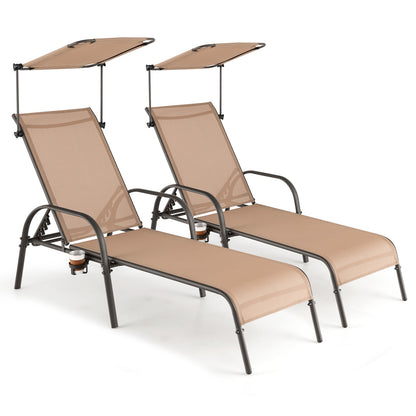Patio Heavy-Duty 5-Level Adjustable Chaise Lounge Chair, Brown