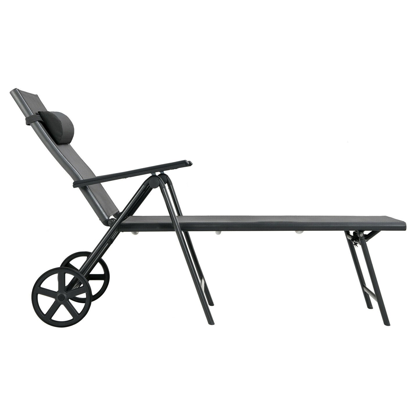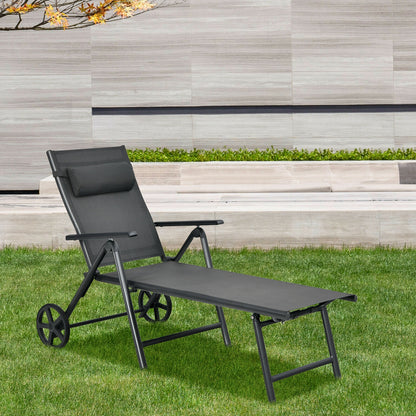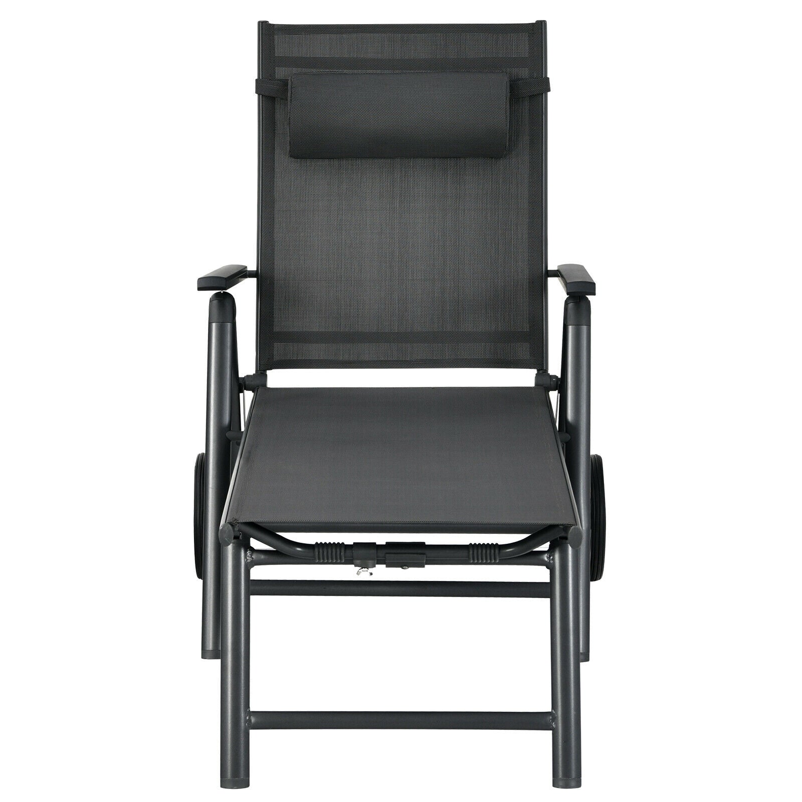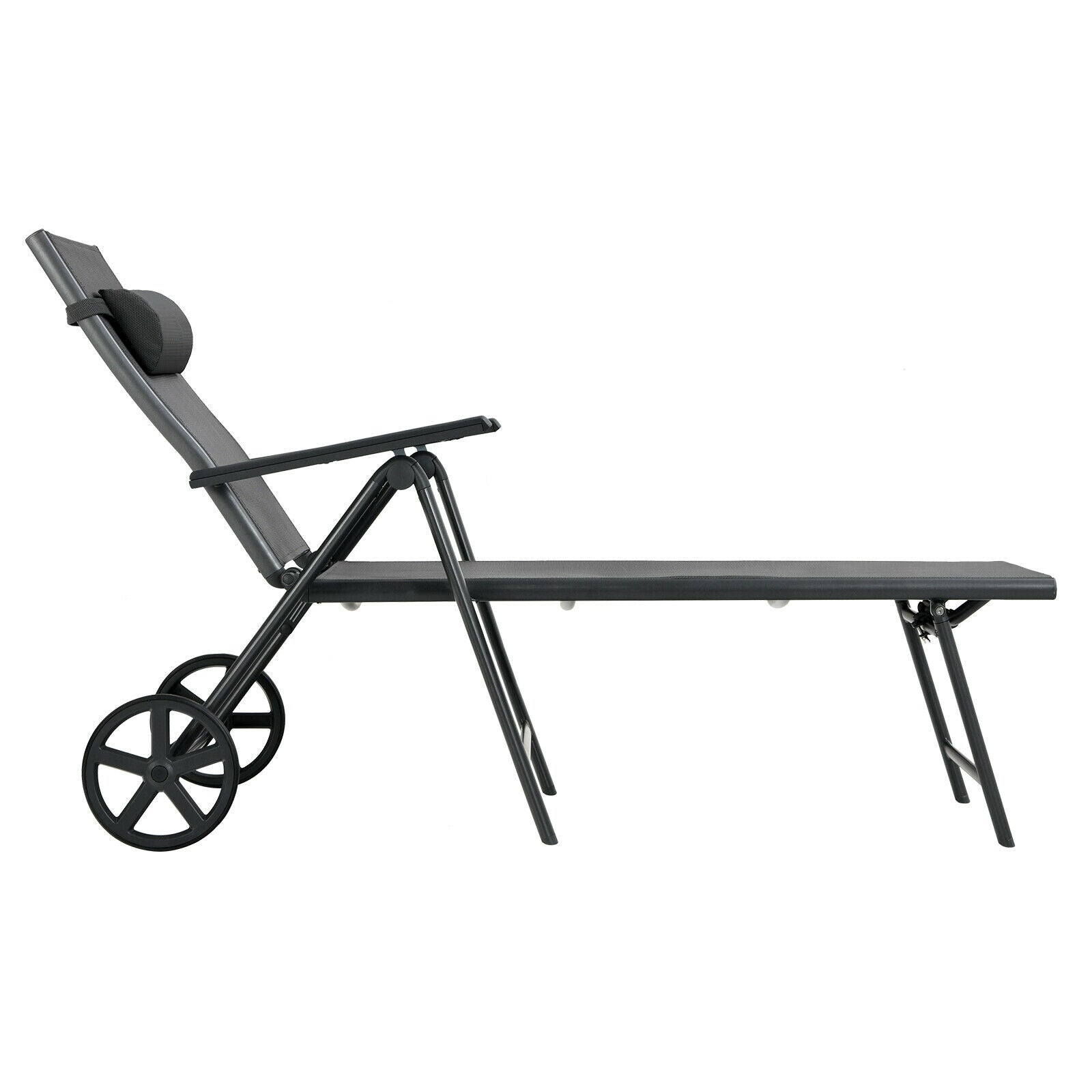 Patio Lounge Chair with Wheels Neck Pillow Aluminum Frame Adjustable, Gray