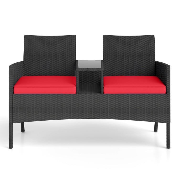 Patio Loveseat with Built-in Table for Backyard Porch, Red