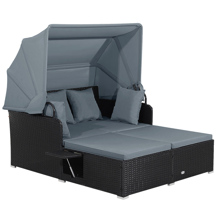 Patio Rattan Daybed with Retractable Canopy and Side Tables, Gray
