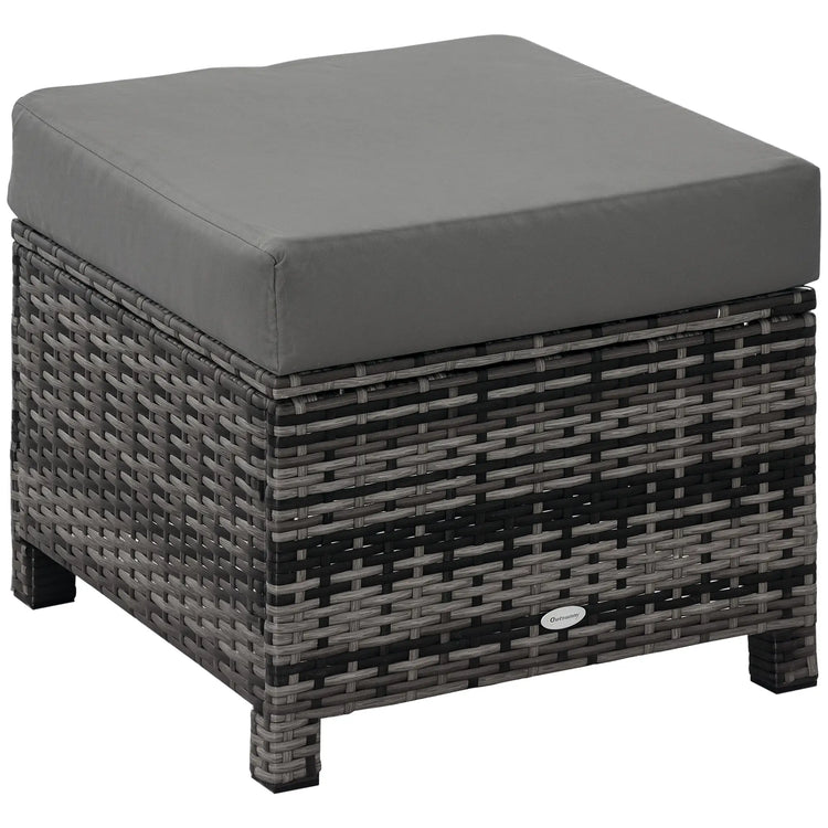 Patio Rattan Ottoman, Outdoor Wicker Footrest with Cushion, Metal Frame, Grey