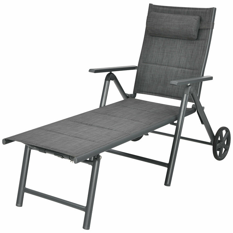 Patio Reclining Chaise Lounge with Adjust Neck Pillow, Gray