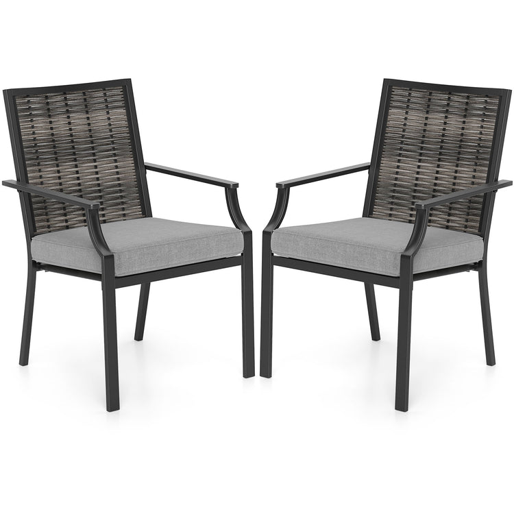 Patio Wicker Chairs Set of 2 Stackable Rattan Armchairs with Removable Cushions-Grey, Gray