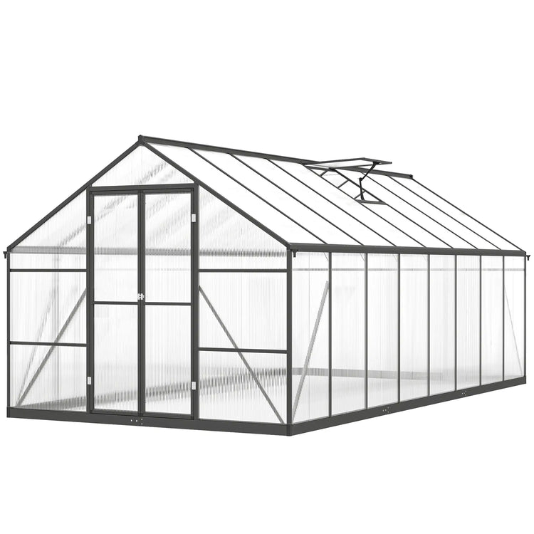 Polycarbonate Greenhouse, Walk-In With Windows, 8' x 16' x 7', Dark Grey