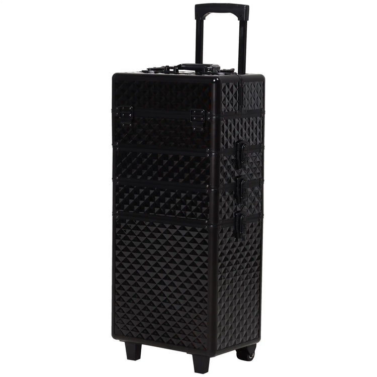 Portable Aluminum Makeup Train Case, 4 in 1, 2 Wheels, Multiple Compartments