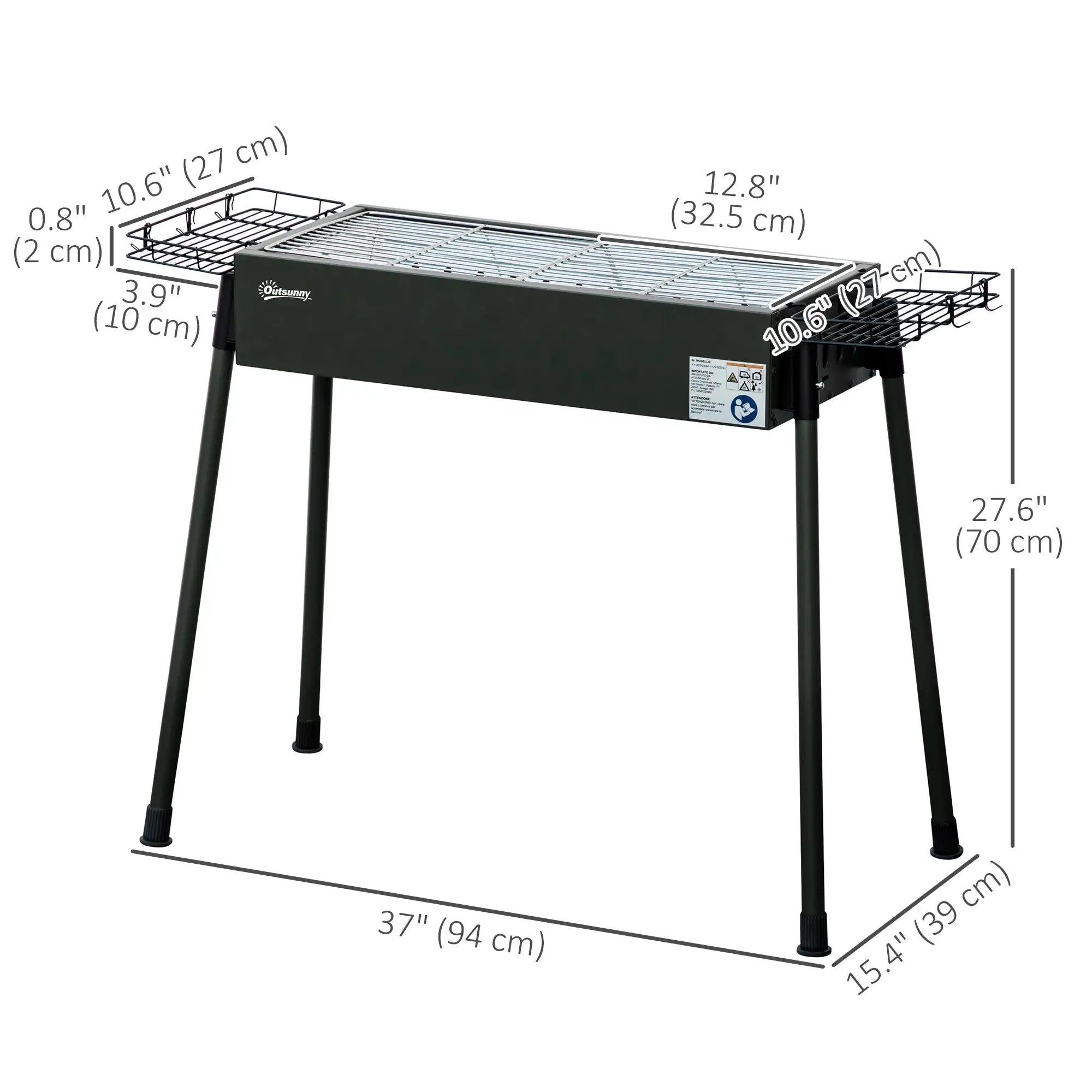 - Charcoal grate size: 26.2" L x 11" W (66.5 cm L x 28 cm W).