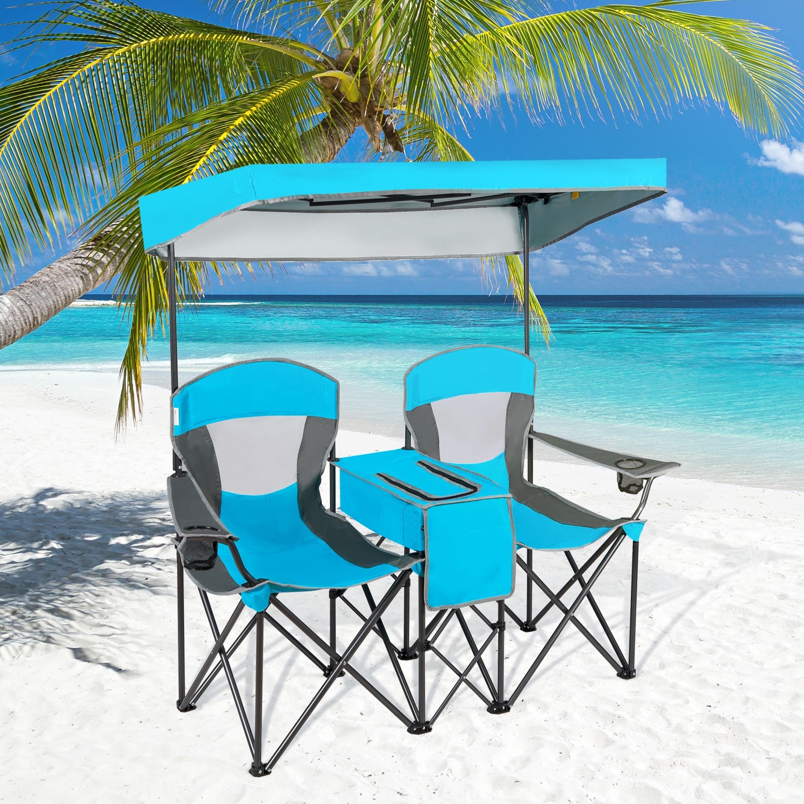 Portable Folding Camping Canopy Chairs with Cup Holder, Blue