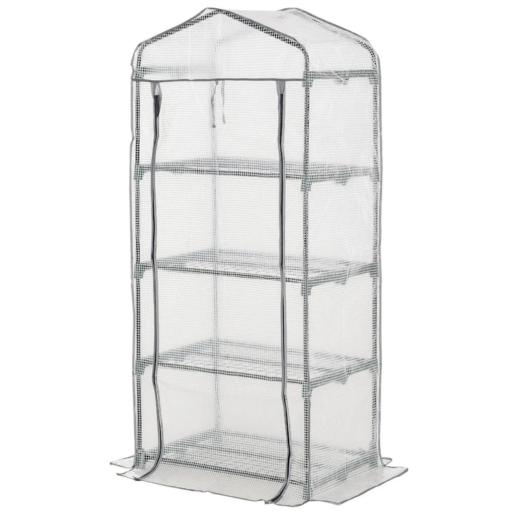 Portable Greenhouse With 4 Tier Shelves, Steel Frame, PE Cover, 28" x 20" x 63", White