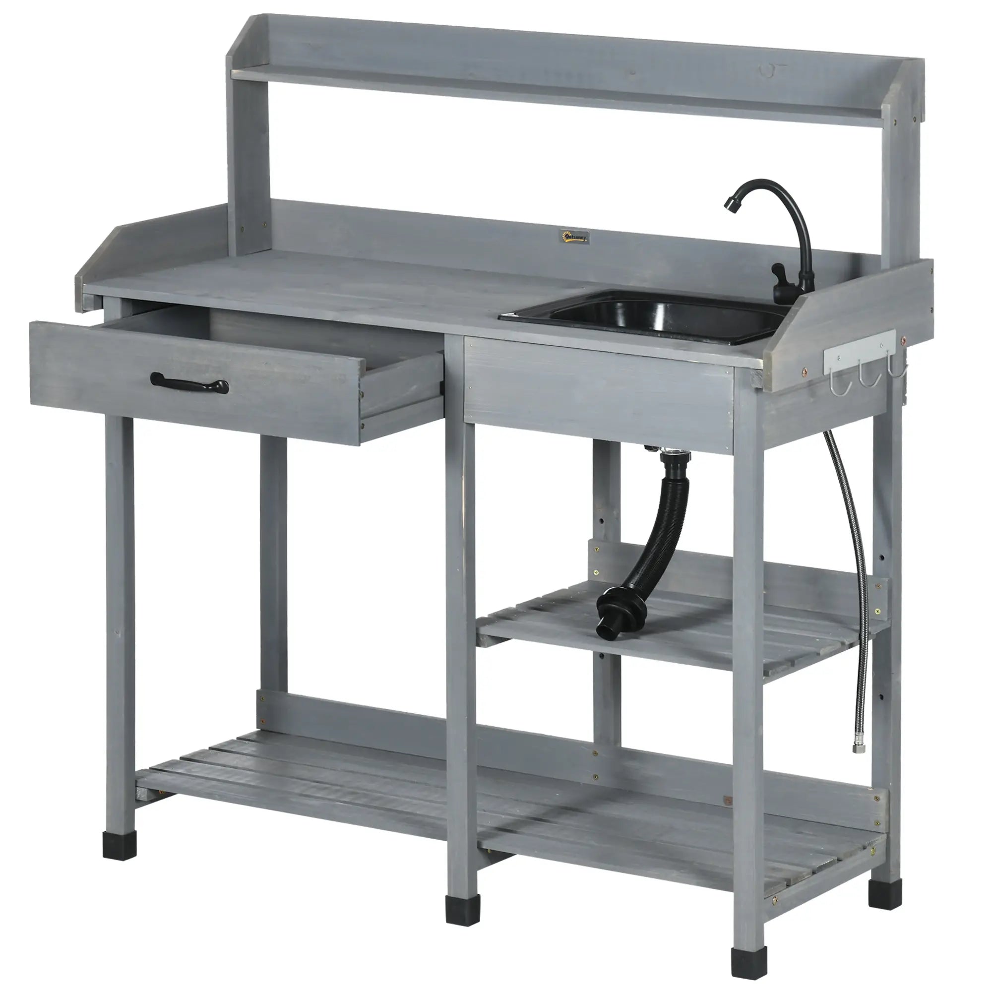 Potting Bench Table, Garden Workstation, 45.3" x 17.7" x 48.4", Grey