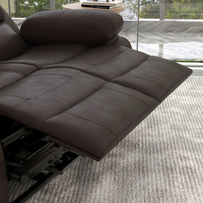 PU Leather Manual Recliner Sofa, Double Loveseat with Footrest, Brown