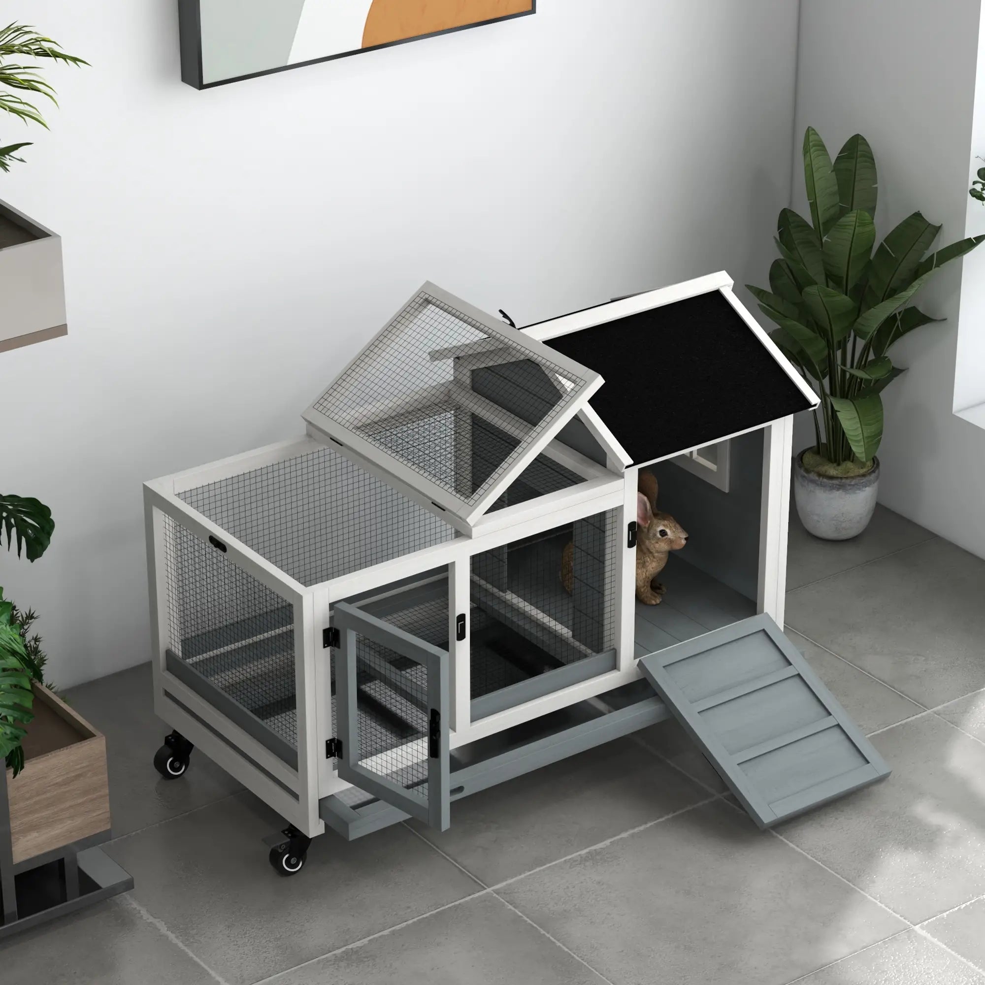 - Directions: Use as indoor or outdoor rabbit hutch