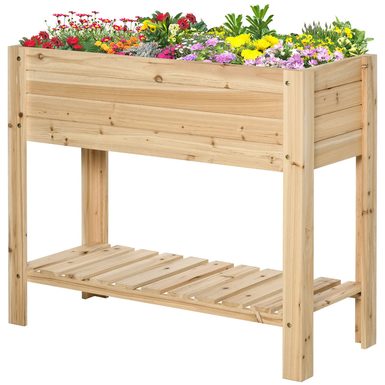 Raised Garden Bed With Legs, Elevated Planter With Shelf, Natural Wood
