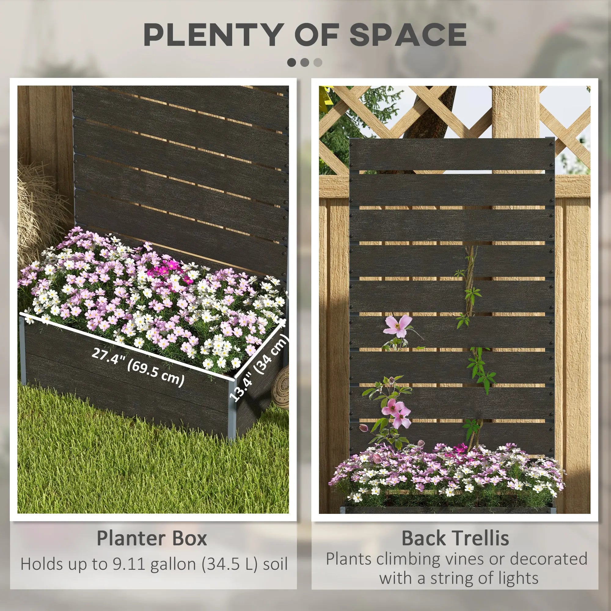 - Maximizes vertical space with a 48.8" (124 cm) trellis, great for climbing plants like roses, beans, peas, or vines.