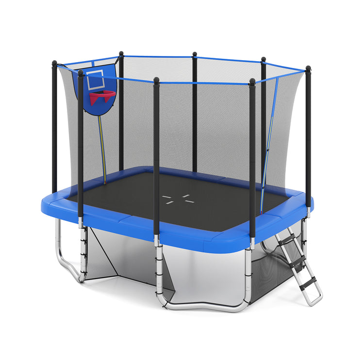 Rectangle Outdoor Trampoline 10 x 8 FT Heavy-Duty Trampoline with Basketball Hoop, Blue