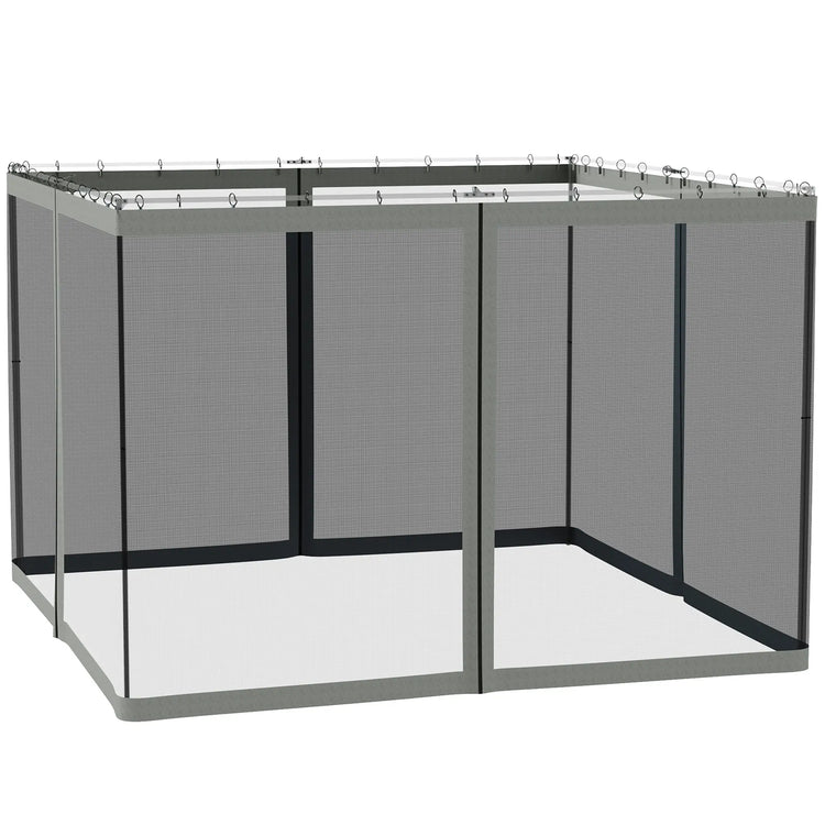 Enhance your outdoor dining experience with our premium replacement gazebo netting, designed for a 10' x 10' (3x3m) gazebo. This dark grey nylon mesh netting effectively keeps pests at bay while allowing visibility and airflow, making it perfect for gatherings. Easy to install and maintain, it includes four panels with zippers for a seamless fit.
