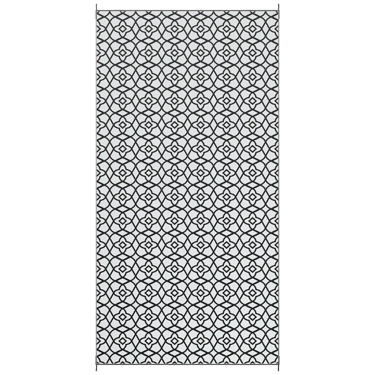 Reversible Outdoor Rug, Waterproof, 9' x 18', Clover, Black and White