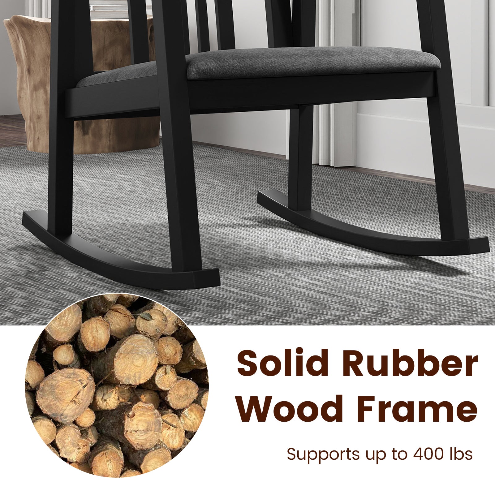 Premium Rubber Wood: This rocking chair is constructed from a solid rubber wood frame that supports up to 180 kg/400 lbs. The study wooden construction and rustic style provide long-lasting durability without compromising style.