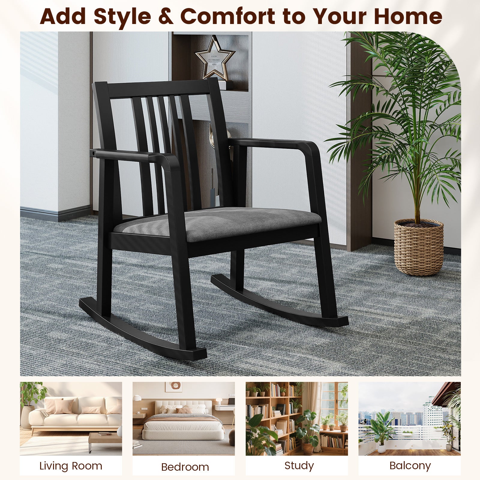 Versatile Placement: This cushioned rocking chair is ideal for reading, knitting, or unwinding in your living room, bedroom, study, balcony or covered patio. Its classic design can integrate seamlessly into a range of decoration styles.