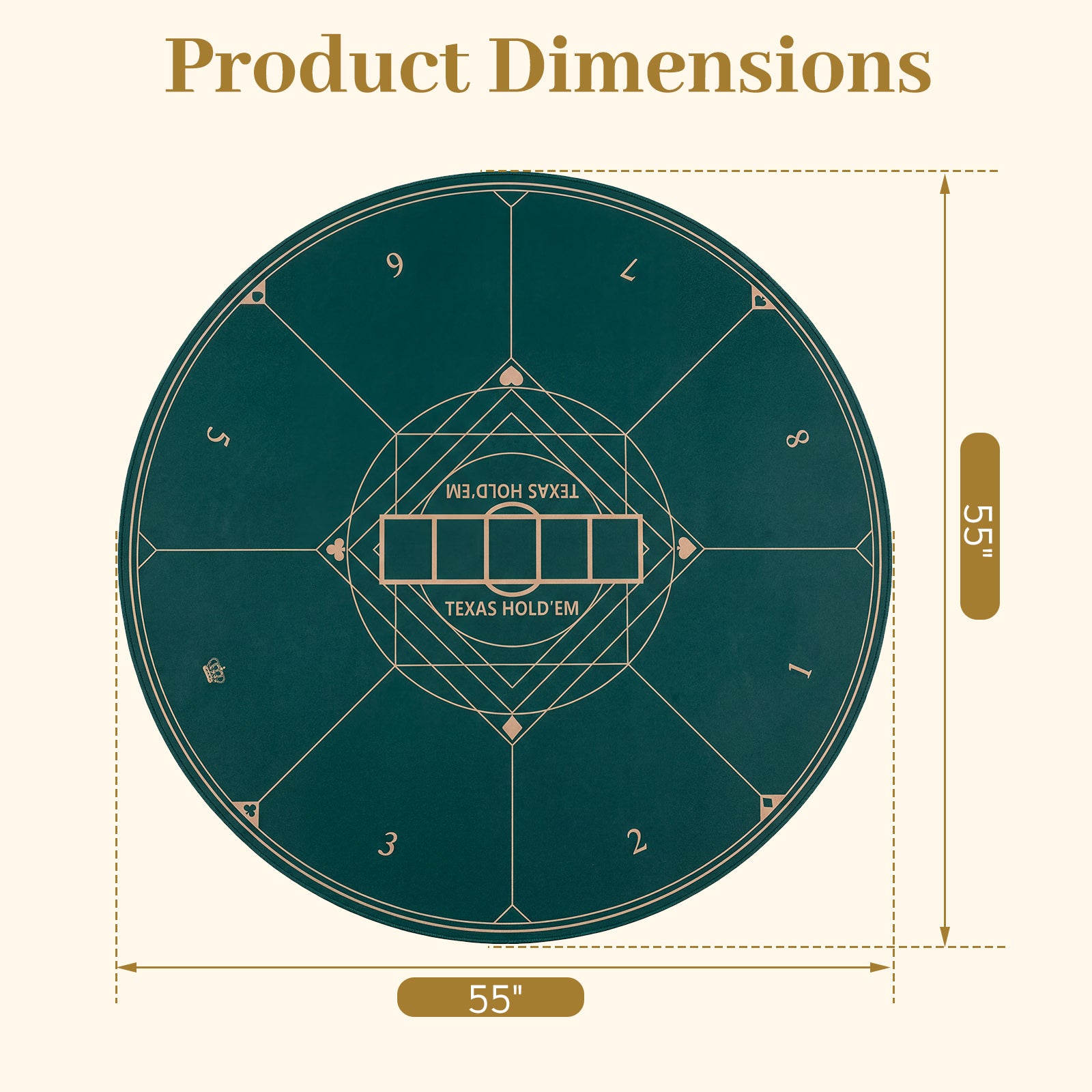 Round Poker Mat, 55 Inch, Portable Foldable Anti-Slip, Green