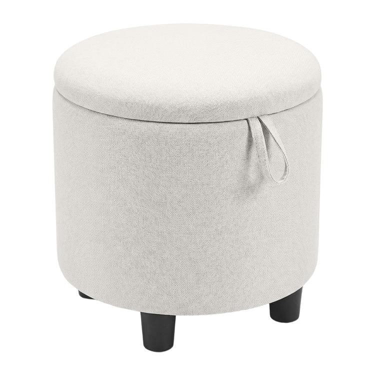 Round Storage Ottoman, Linen Fabric Upholstered Footrest Stool, Beige